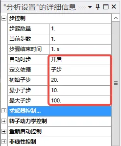 Solver Control: Compared to linear analysis, the parameters that need to be set are as follows: