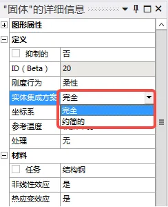 In the geometric model, it is necessary to determine the integration method used for this analysis (full integration or reduced integration), which can generally be left at the default setting.