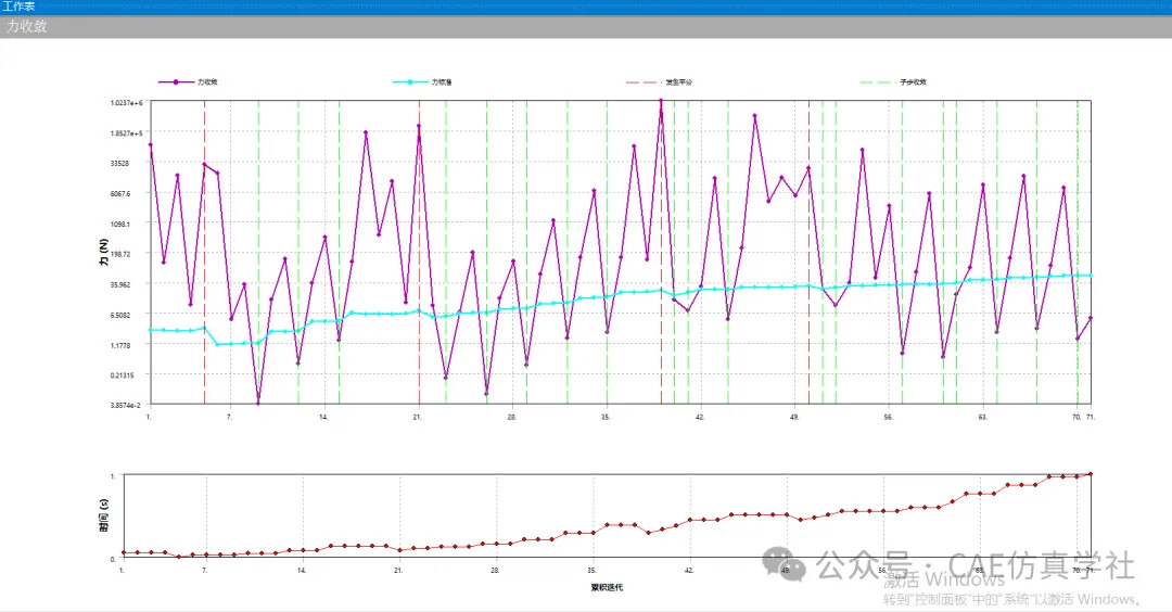 The output information from the solver can be used to view the entire solution process; the convergence information of the force can be used to observe the loading and iteration processes.