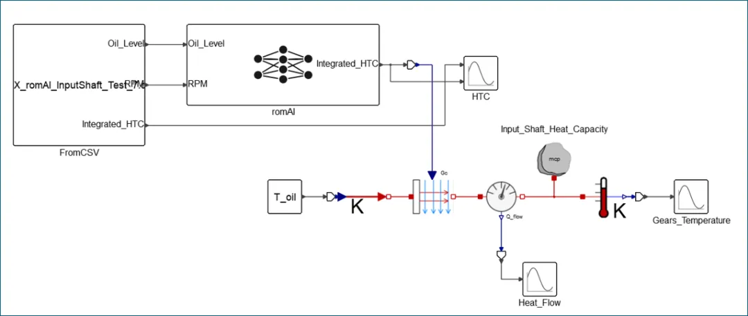 齿轮箱动态ROM应用于Activate热系统仿真,快速预测不同运行工况下的齿轮箱温度。