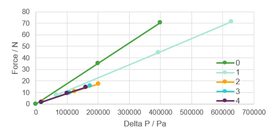 CFD结果:不同阀门开度下,液力-压差曲线