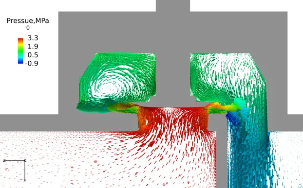 瞬态CFD动画:入口2bar, 阀门开启100毫秒