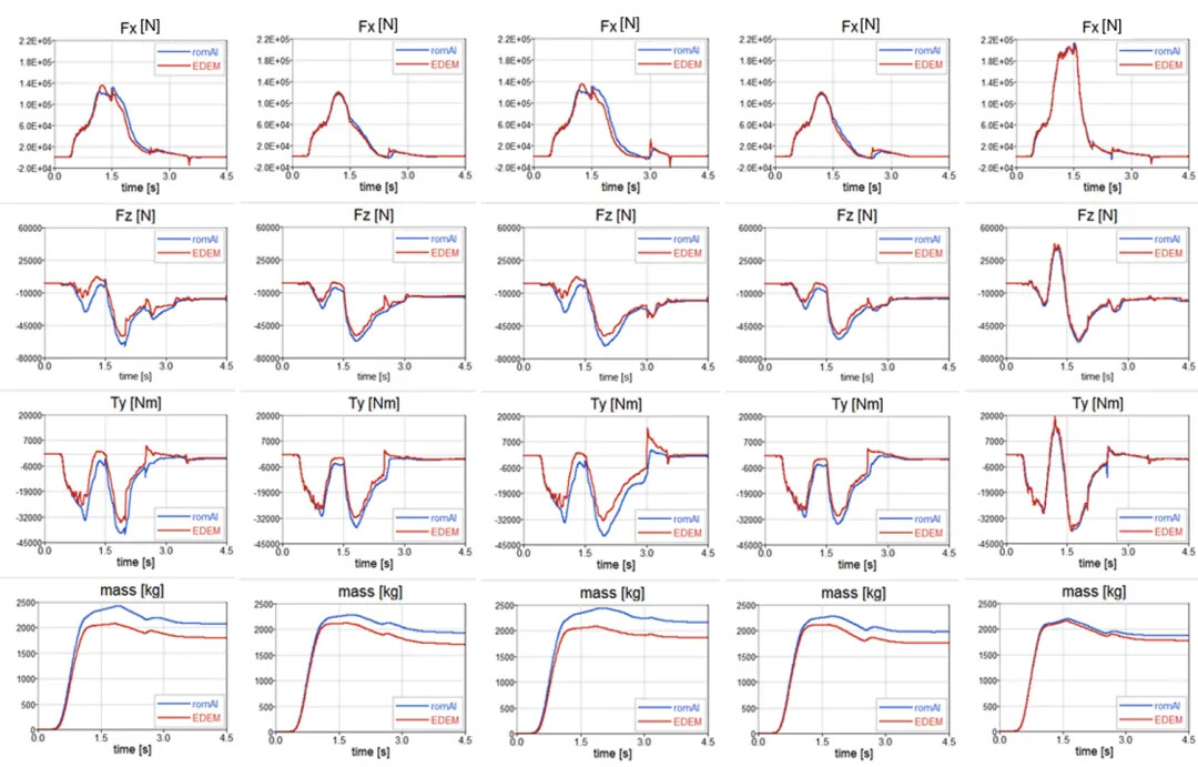 红色-EDEM耦合仿真数据,蓝色-romAI预测数据