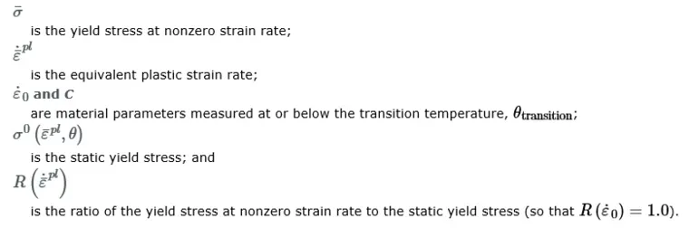 It is typically used for adiabatic transient dynamic simulations and is combined with the Johnson-Cook dynamic failure model in Abaqus/Explicit. In Abaqus/Explicit, it can be paired with a tensile failure model to simulate tensile tearing or pressure fracture. It can also be integrated with progressive damage and failure models to specify different damage initiation criteria and evolution laws, allowing for progressive degradation of material stiffness and removal of mesh elements. It must be combined with linear elastic material models (linear elastic behavior) or state equation material models (equation of state).