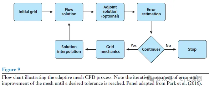 The review addresses advancements in mesh adaptivity techniques, which optimize computational resource allocation by dynamically adjusting mesh density based on the characteristics of the flow field, thus improving the accuracy of CFD solutions while maintaining computational efficiency. By automatically refining the mesh to capture critical features in the flow field, such as shock waves, boundary layers, and detached flow regions, mesh adaptivity techniques enable CFD simulations to predict flow characteristics more accurately, particularly in complex flow and geometry scenarios, which is vital for aerospace design and analysis.