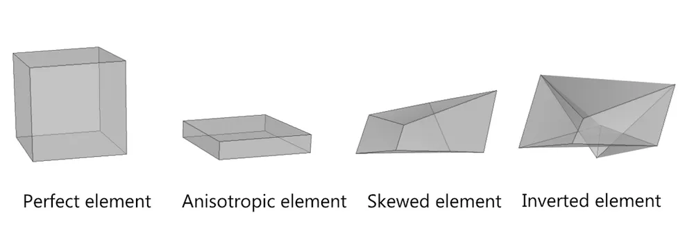 高质量的网格单元是尽可能呈各向同性的单元,例如,六面体形状的单元。我们可以使用不同的质量度量来量化单元的质量。例如,理想网格单元的质量通常为1,但也有一种观点认为理想单元的质量为 0。