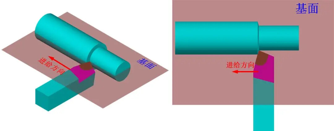 Base Plane: A plane that passes through a selected point on the main cutting edge and is parallel to the bottom plane of the tool holder.