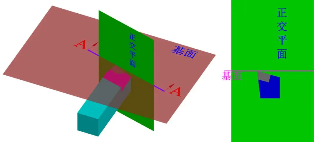 Orthogonal Plane: A plane that is perpendicular to both the cutting plane and the base plane.