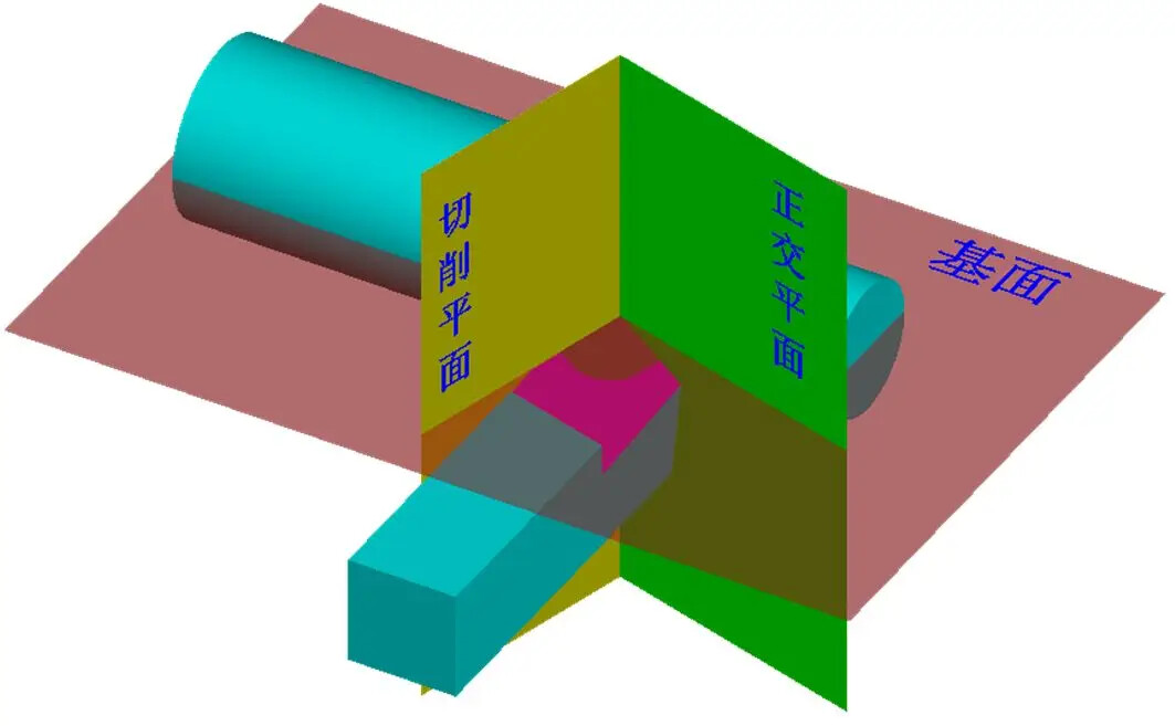 To determine and measure the geometric angles of the lathe tool, three auxiliary planes are selected as references: the cutting plane, base plane, and orthogonal plane.