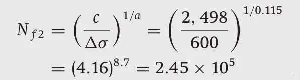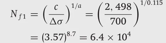 Therefore, the fatigue life (number of cycles) is: