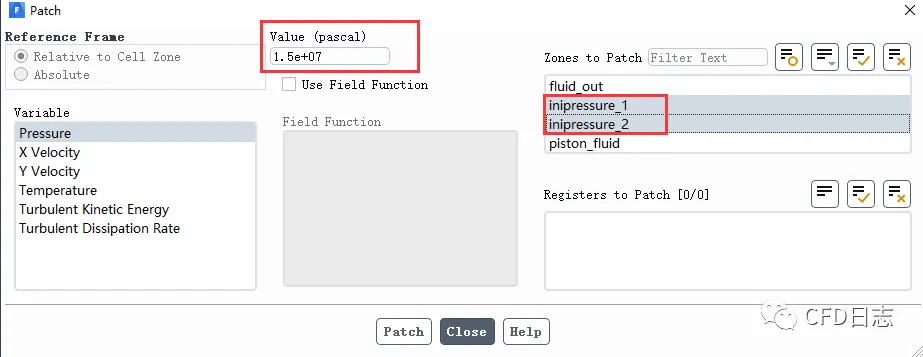 The outlet boundaries out and out2 are set as pressure outlets, as shown in the figure below.