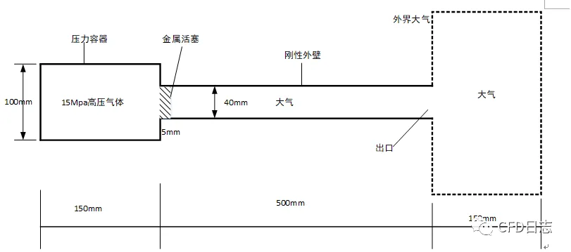 The high-pressure gas inside the pressure vessel has a pressure of 15 MPa. The gas pushes a metal piston (with a width of 5 mm) to move within a rigid pipe, from the outlet to the surrounding atmosphere.