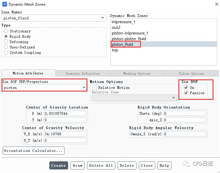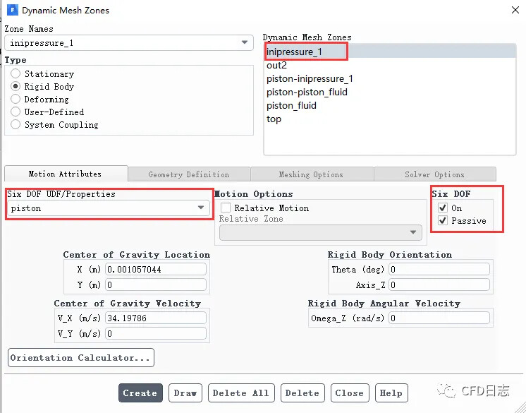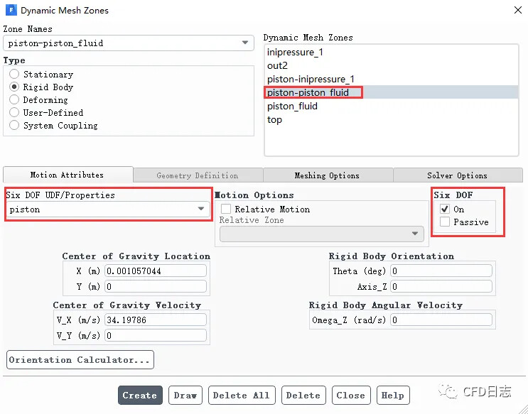Double-click on the Dynamic Mesh in the model tree to enable Layering and Six DOF, and create the Six DOF properties as shown below.