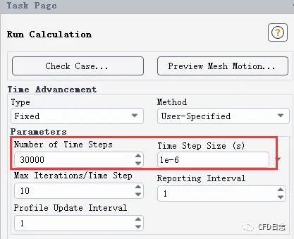 The calculation settings include the total number of time steps and the time step size, as shown in the figure below.