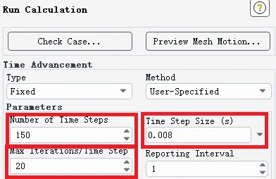 Number of time steps表示有多少个这样的时间间隔。所以流动总时间应该是Number of time steps与time step size相乘,由于每个时间间隔最多迭代Max Iterations per Time Step,所以最大的迭代步数应该是Max Iterations per Time Step乘以Number of time steps。