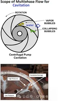 - During water pumping, vapor can form in low-pressure areas within the impeller, causing cavitation. Cavitation issues are studied using multiphase modeling.