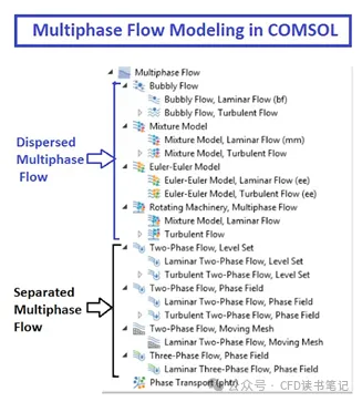 COMSOL offers solutions for laminar and turbulent multiphase flows, except in cases of three-phase flows and two-phase flows with moving grids.