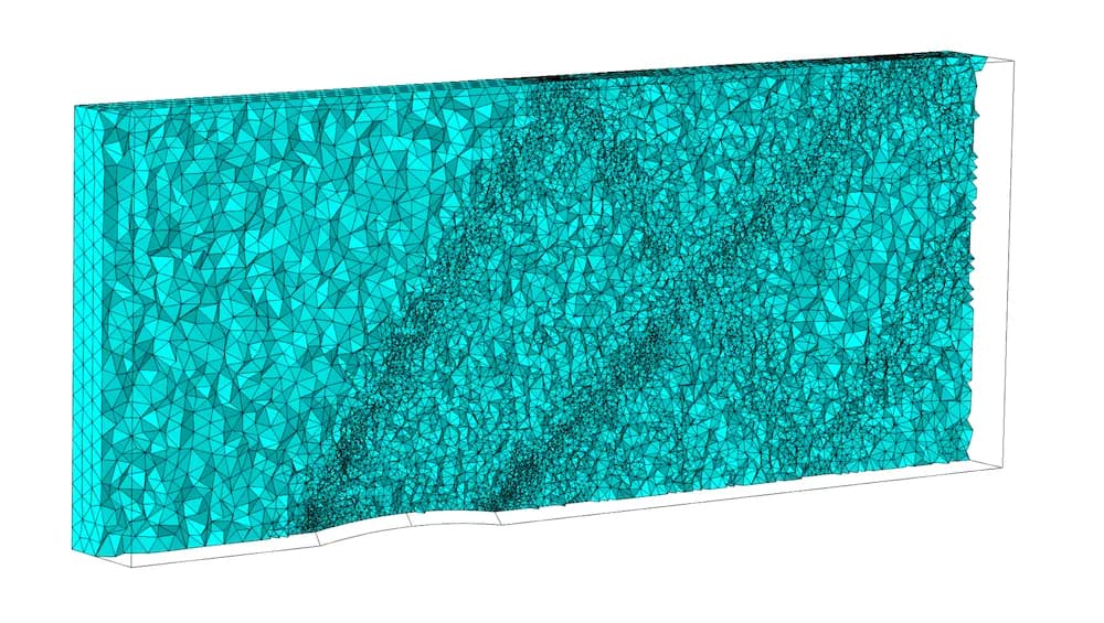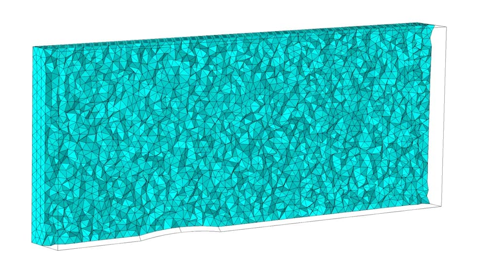 自由三角形网格划分操作在三维模型中很少使用,其主要用途是对各个面进行“网格划分测试”,尤其是那些我们已经对其应用虚拟操作的面。我们可以研究各个面上的网格质量,而无需为相邻的体划分网格。非结构化三角形网格也可以用作扫掠网格的起点。这种策略会产生包含棱柱单元的网格,棱柱单元的二次边可以被拉伸,从而产生各向异性网格。