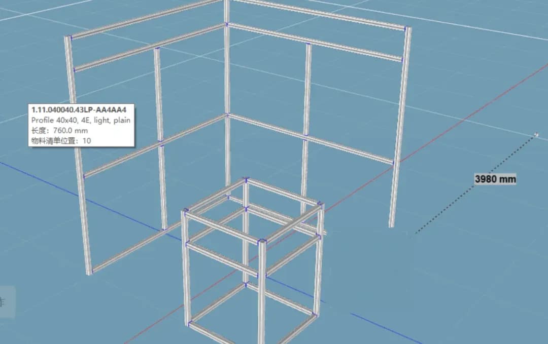 创建结构:使用绘图工具或拖拽放置工具,在设计界面上创建所需的结构框架,可以通过连接工具将各个型材连接在一起。