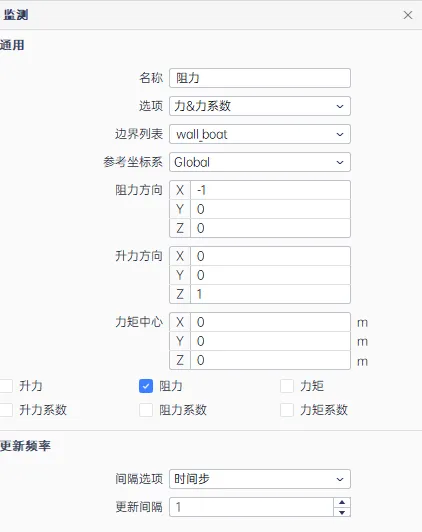 创建阻力监测,计算过程中输出阻力的变化曲线和文件。