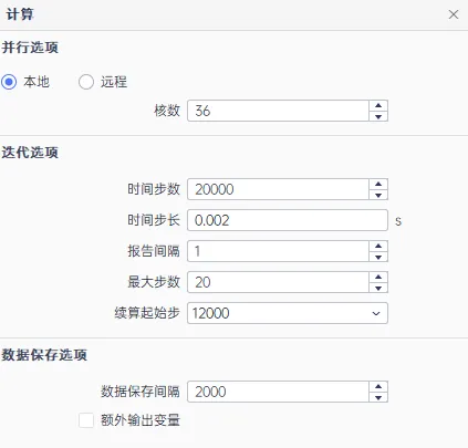 瞬态计算的时间步长为0.002s,根据物理时长设置时间步数。PERA SIM Fluid支持本地并行计算,可大幅提升计算效率。