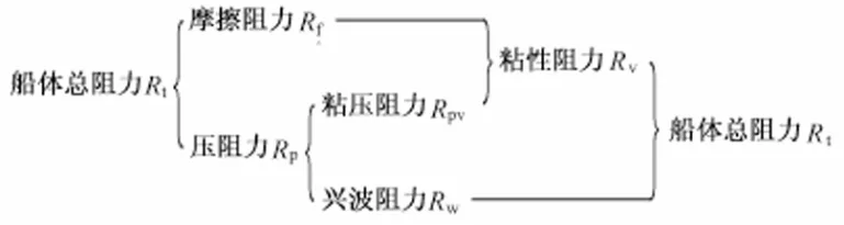 因此按产生阻力的物理现象分类,船体总阻力由兴波阻力、摩擦阻力和粘压阻力三者组成。