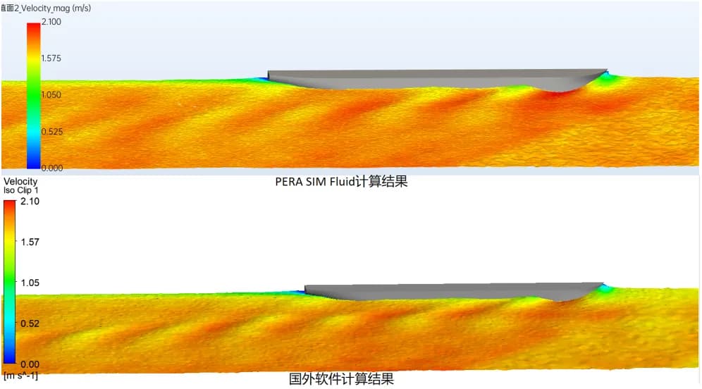 对比船首和船尾水相体积分数分布,可以看到PERA SIM Fluid对液面的捕捉具有较高的精度。