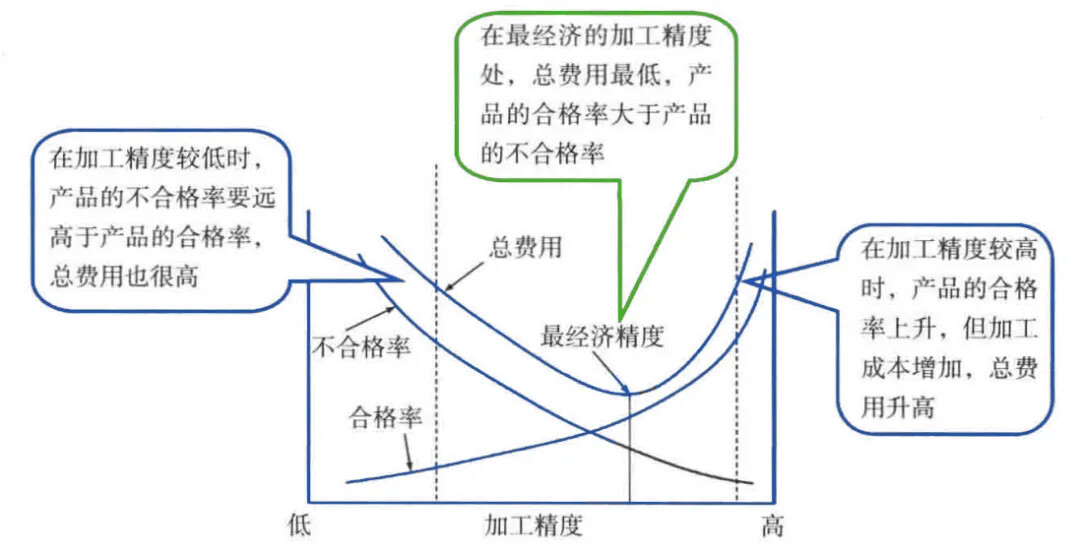 Economic precision refers to selecting the lowest-cost and suitably precise machining standards while meeting usage demands to maximize benefits. Therefore, the formulation of process guidelines must consider economic precision. Figure 1 illustrates the relationship between machining precision, defect rates, and economic viability, where the point with the lowest total cost represents the most economical precision.