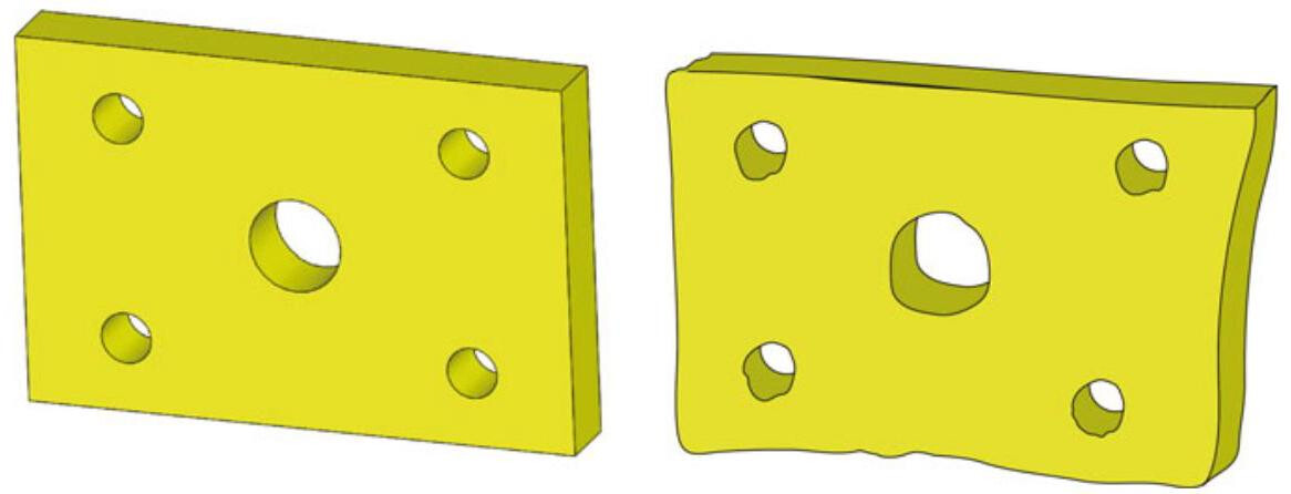 Fig. 1.1 The real surfaces of a constructed part may deviate to various extents from both the geometrically exact form indicated during the design phase and from the pre-established position with respect to surfaces or points assumed as a datum.