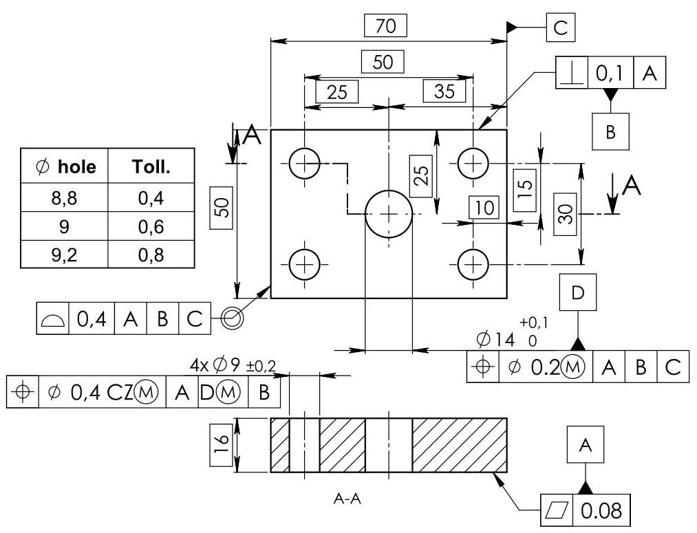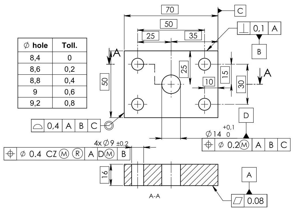 Therefore, a hole verified with a diameter of 8,4 mm could be mated without any problems if it has a zero-position error, but the component would nevertheless be discarded during the dimensional control.