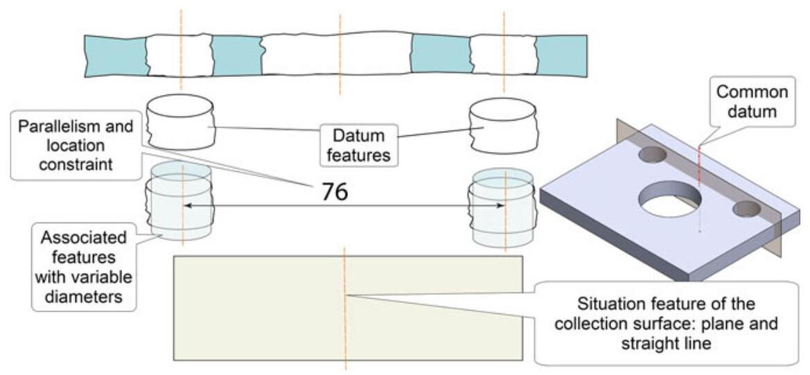 A datum consists of a set of situation features for an ideal feature (feature of perfect form) associated with the identified datum features of a workpiece. Since these ideal features have the task of blocking the degrees of freedom of the tolerance zones, the geometrical type of these associated features should be one of the invariance classes reported in Table 6.1.