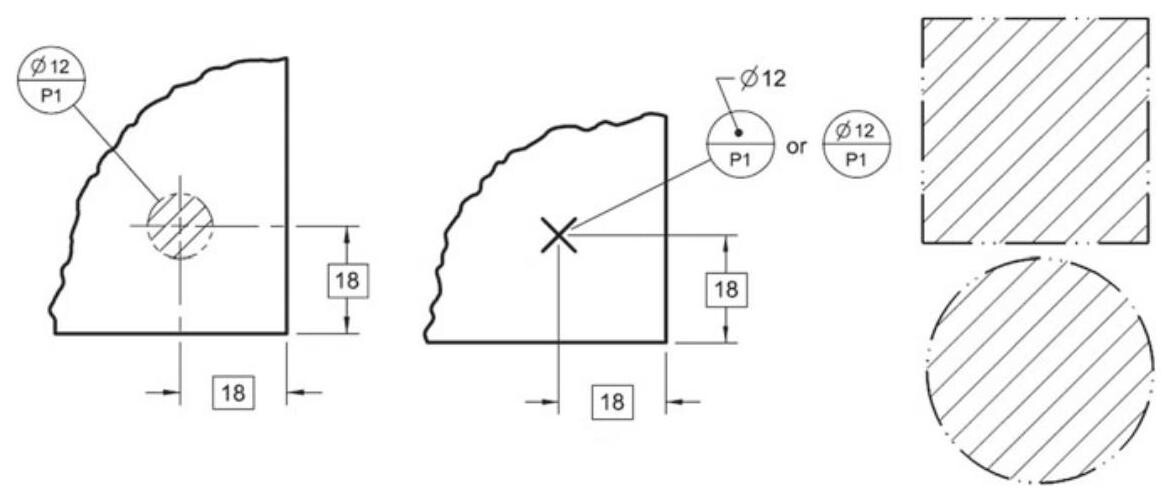 Fig. 6.80 Cylindrical datum target area and line with the simulated gauge
