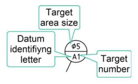 The symbols of the datum targets in the ASME Y14.5 standard are basically identical to those of the ISO standard, albeit with some slight differences: