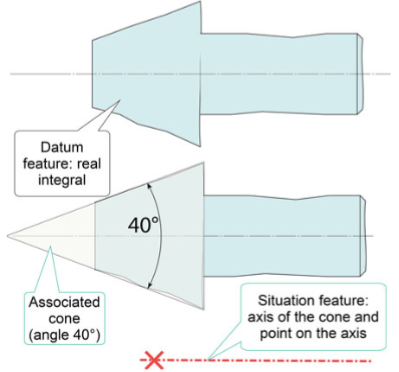 Fig. 6.59 The real integral surface is obtained after partition/extraction. The datum is characterised by the situation features of the cone associated with the real integral feature without external constraints. The invariance class of the nominal surface is revolute and the situation features are the axis of the cone and a particular point along this axis (vertex or defined by the location)