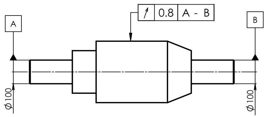 Fig. 6.70 The situation feature used to establish datum A is the axis of the cone. The situation features used to establish datum B are the axis of the cone and one point on the axis. When a complementary indication (SL, PL or PT) applies to all the elements of the collection of surfaces of a common datum, the sequence of letters that identify the common datum should be indicated within parentheses