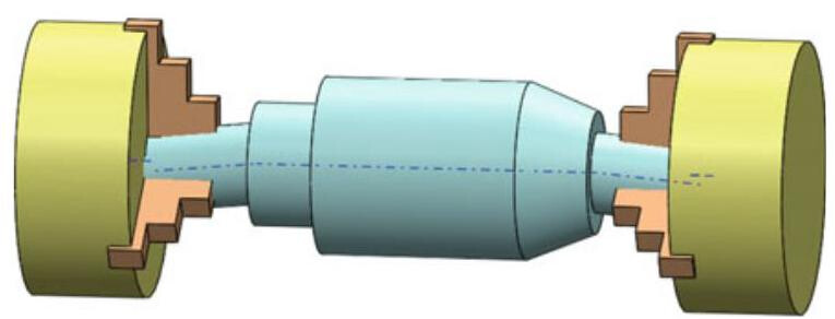 Fig. 6.19 When a cylindrical feature is designated as a datum feature, the datum axis is derived by placing the part in an adjustable gauge (self-centring chuck used as a datum feature simulator)