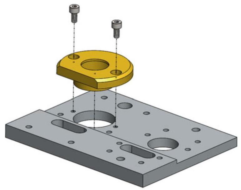 Identification of the feature that blocks the workpiece in the assembly, in order to establish the tertiary datum. Finally, tertiary datum C that blocks the workpiece, which is constituted by the milled surface of the component and of the corresponding surface of the plate, is added.