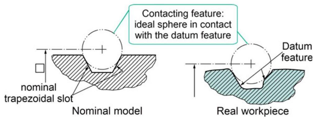 Fig. 6.84 A contacting feature is an ideal feature, with a theoretically exact geometry, which is different from the nominal geometry of the integral geometrical feature with which it is in contact