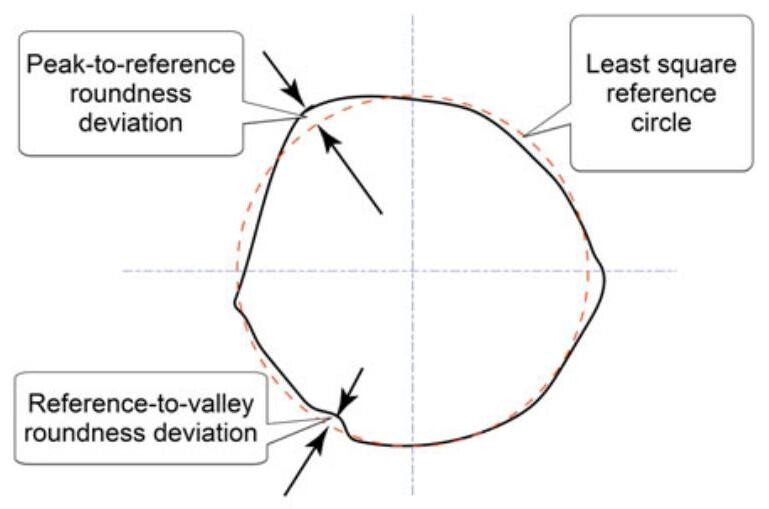 (2) Peak-to-reference roundness deviation, that is, the value of the largest positive local roundness deviation from the least squares reference line.