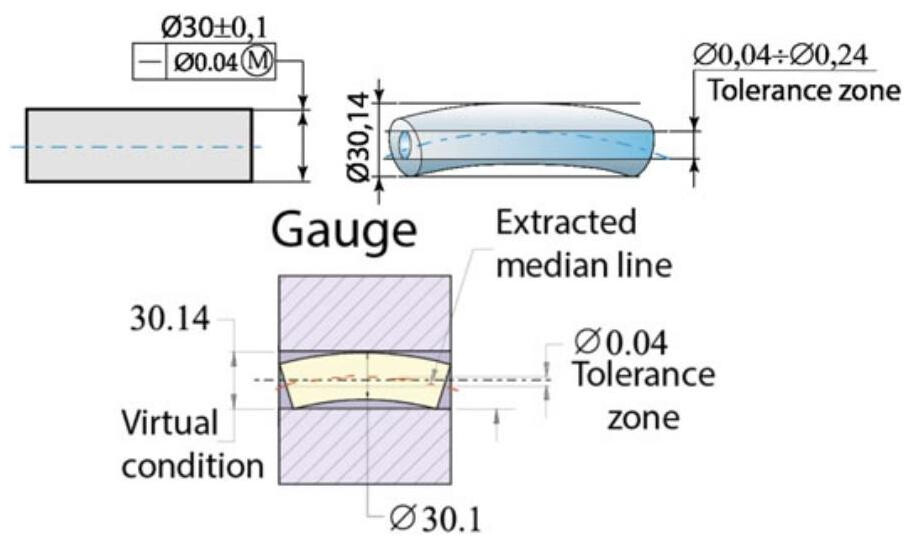 The application of MMC is helpful since the virtual condition defines the fixed size of the functional gauge that should be used for the verification of a straightness error.