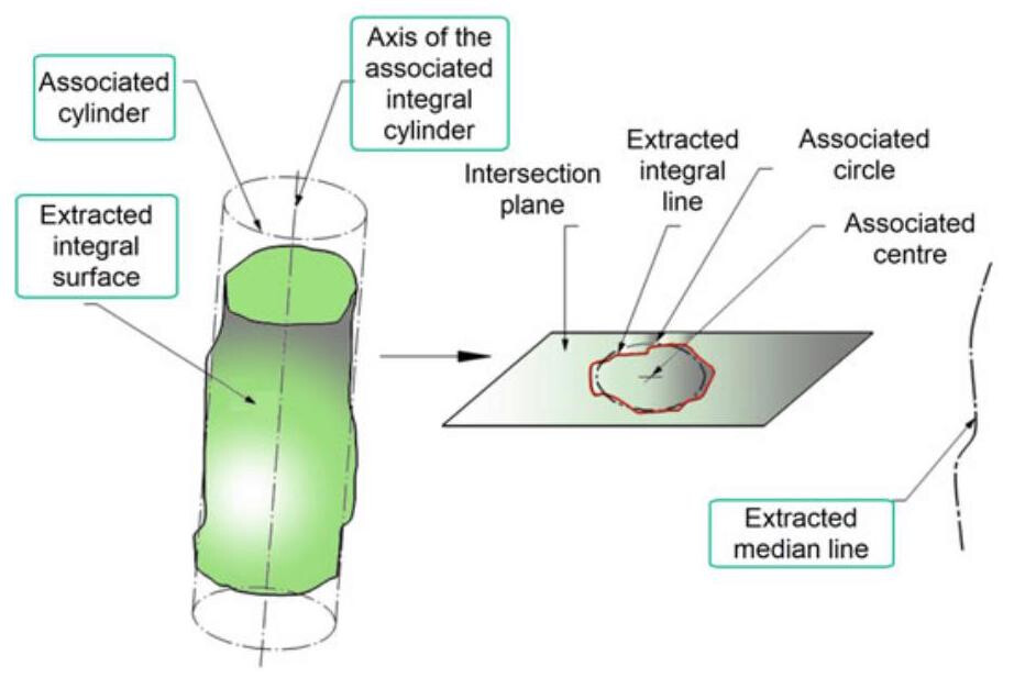 According to this standard, the extracted surface is a digital representation of the real surface, while the cylindricity surface is an extracted surface (of a cylindrical type) intentionally modified by a filter.