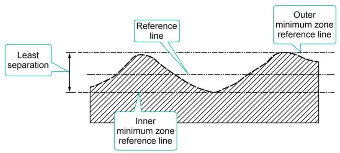 - The minimum zone reference line method (MZ), which best satisfies the tolerance zone definition (Fig. 7.7).