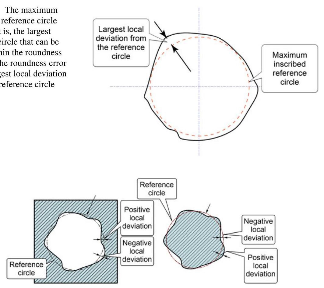 - The maximum inscribed reference circle (MI), that is, the largest possible circle that can be fitted within the roundness profile (Fig. 7.31).
