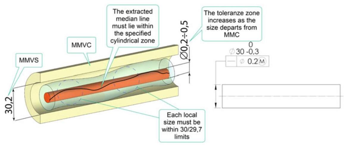 The application of MMC is helpful since the virtual condition defines the fixed size of the functional gauge that should be used for the verification of a straightness error.
