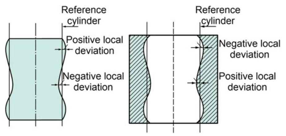 Fig. 7.41 Local form deviations of an external and internal cylindrical feature