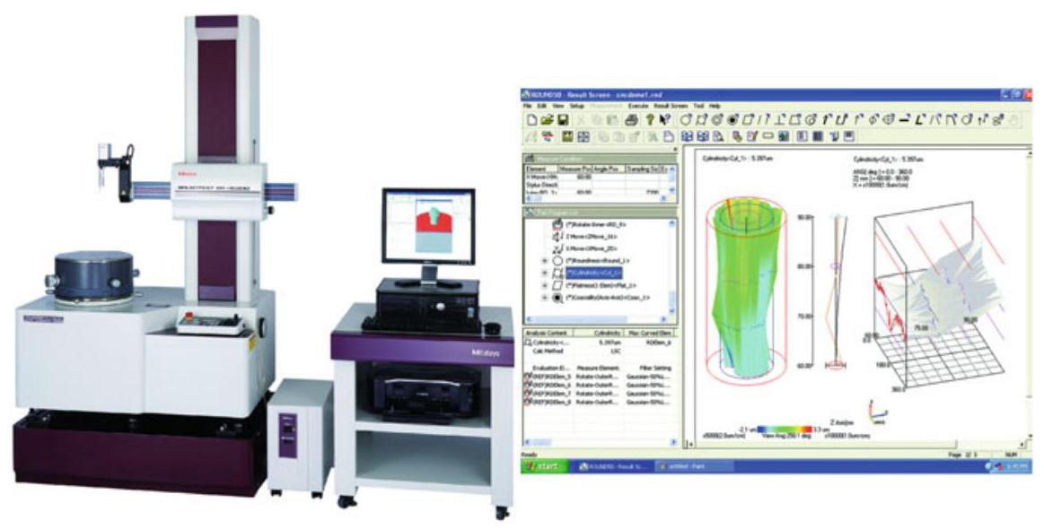 The control of cylindricity may be achieved by means of coordinate measuring machines, or through the use of other systems, such as the “Roundtest Machine” shown in Fig. 7.43, which is a CNC form measuring instrument that combines high accuracy with automatic CNC measurements.