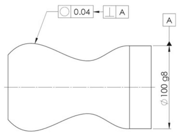 In the same way as for the flatness case, it is advisable, as a general rule, to choose a tolerance of a value that is less than half that of the dimensional tolerance; moreover, it is not possible to apply a maximum material or least material modifier, in that the roundness tolerance controls the boundary points of a transversal surface, a feature that cannot be sized.