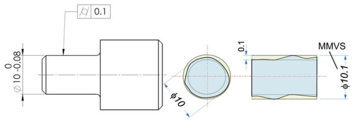 Fig. 7.40 Interpretation of the independency principle for a cylindricity tolerance. A maximum material virtual size (MMVS) of 10.1mm is obtained