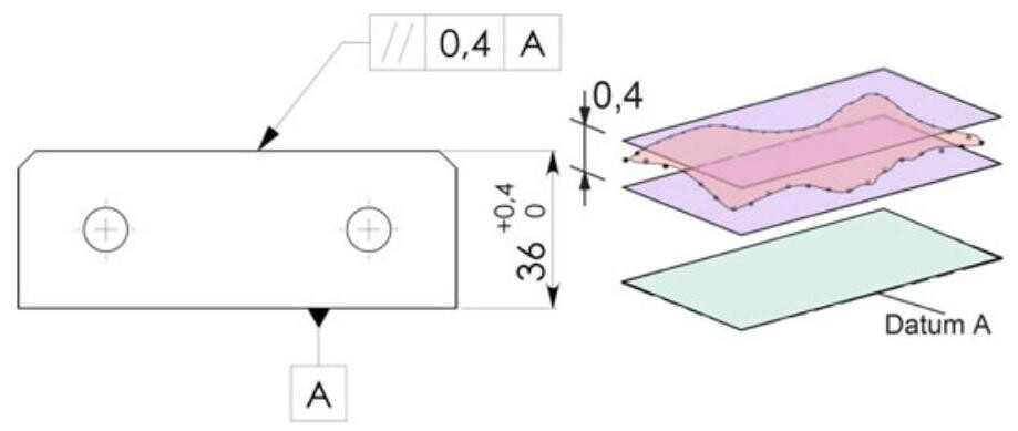 Fig. 8.8 Parallelism specification of a planar surface related to a datum plane