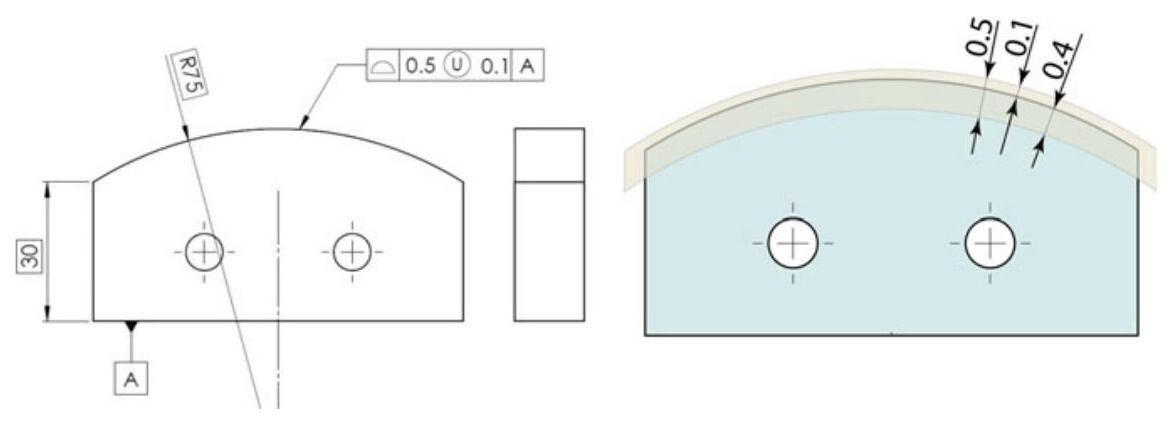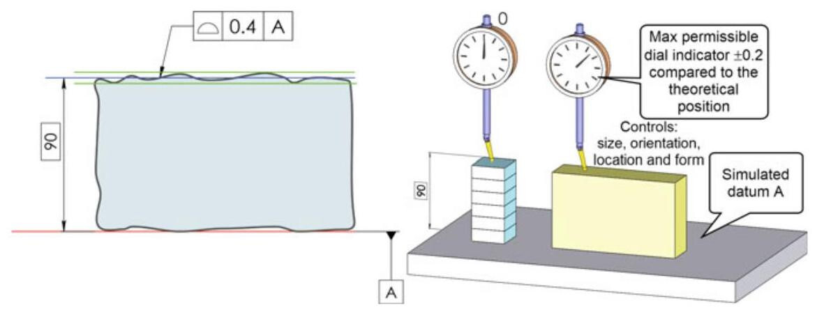 Fig. 10.4 A profile tolerance is very easy to inspect, and the location of the surface, as well as the size, the parallelism and the flatness error are controlled